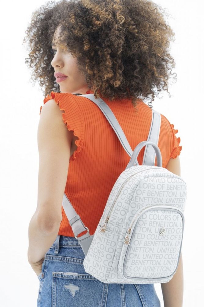 Benetton Monogram Beyaz-Gri Kadın Sırt ÇantasıÜrün Kodu: BNT169Materyal: Suni DeriÖlçüler: 23x28x12 cmAyarlanabilir askı özelliği, ön kısmında fermuarlı cep