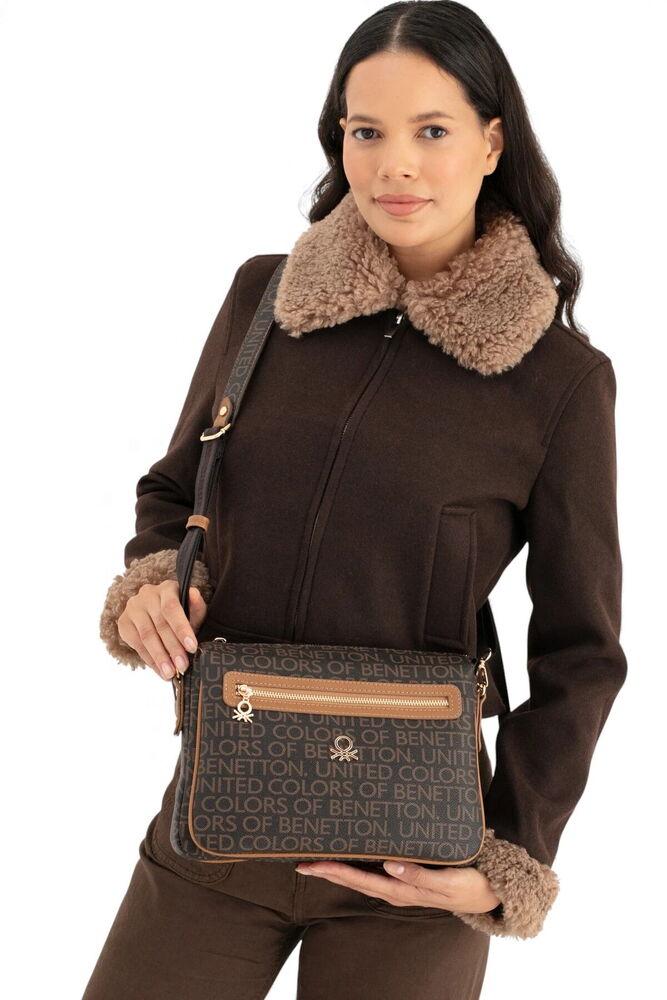 Benetton Monogram Kahve-Taba Kadın Çapraz Askılı Çanta