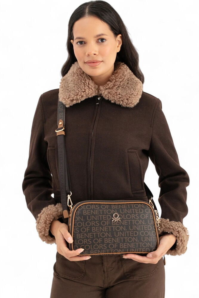 Benetton Monogram Kahve-Taba Kadın Çapraz Askılı Çanta