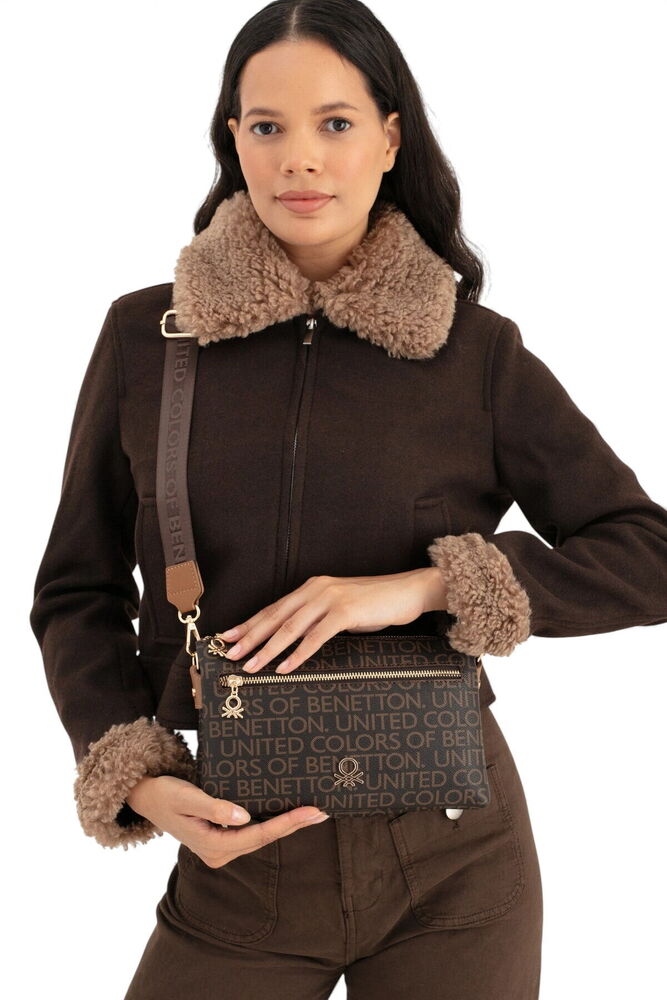 Benetton Monogram Kahve-Taba Kadın Çapraz Askılı Çanta