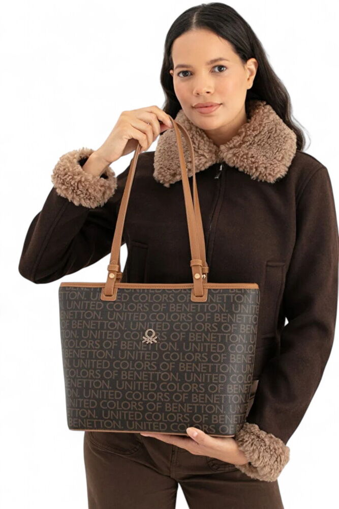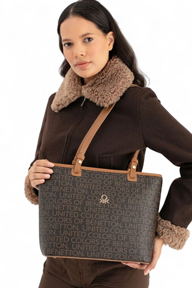 Benetton Monogram Kahve-Taba Kadın Omuz Çantası