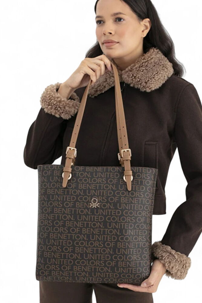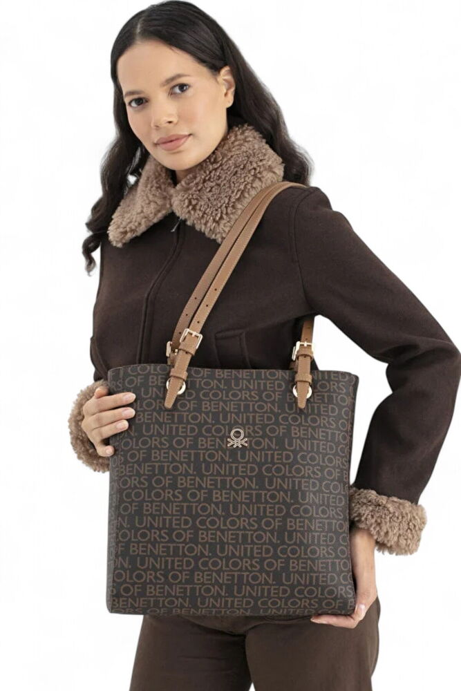 Benetton Monogram Kahve-Taba Kadın Omuz Çantası