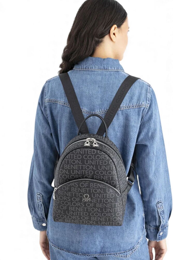 Benetton Monogram Siyah Kadın Sırt Çantası