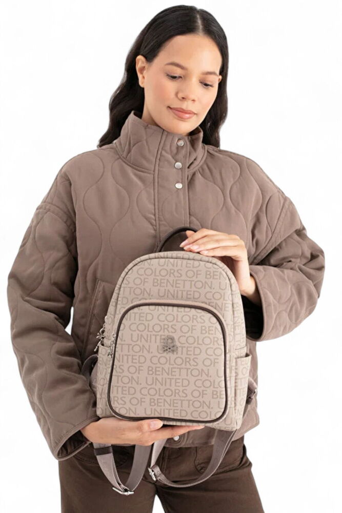 Benetton Monogram Taş-Kahve Kadın Sırt Çantası