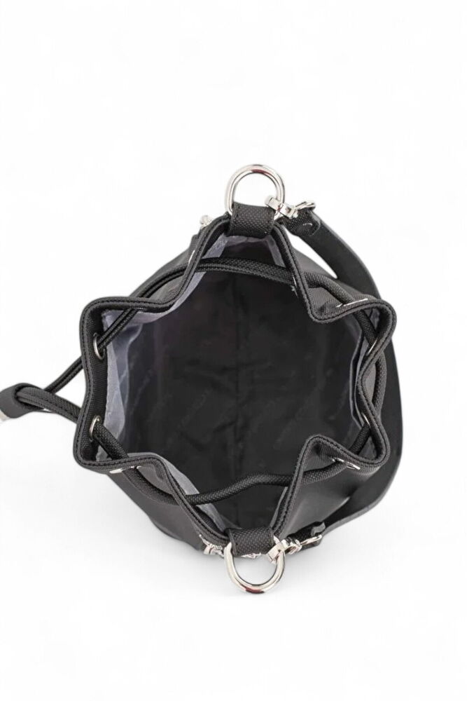 Büzgü kapamalı ana bölme Ana bölme içinde; 1 adet açık cep 2 adet fermuarlı yan cep Ayarlanabilir, çıkarılabilir omuz askısı