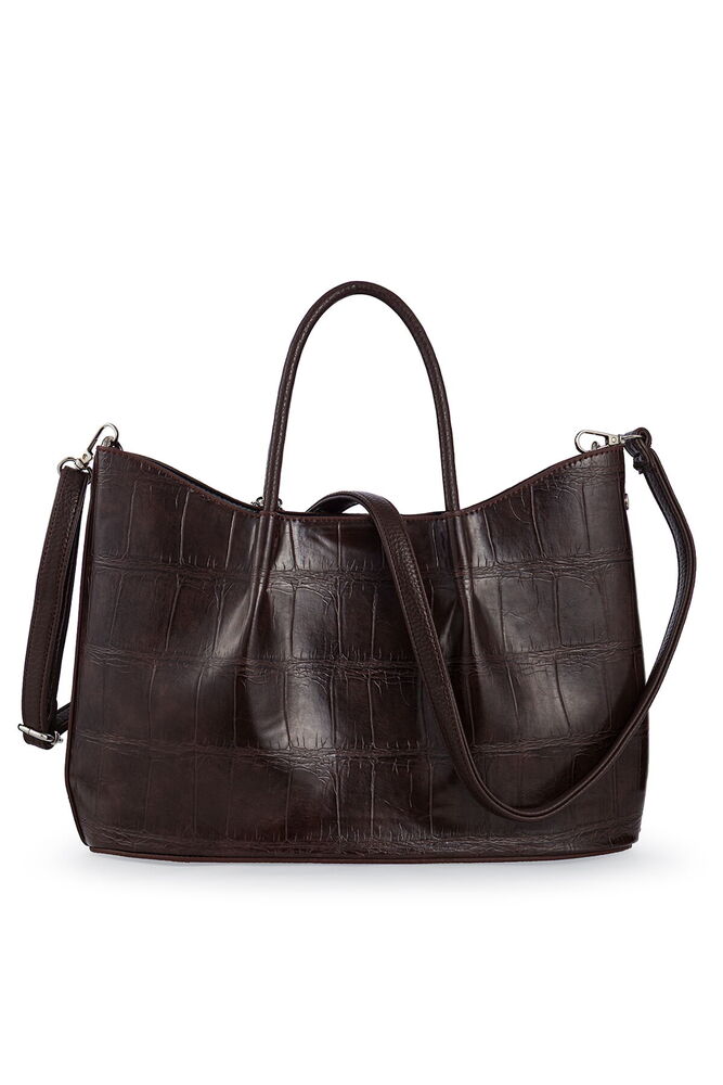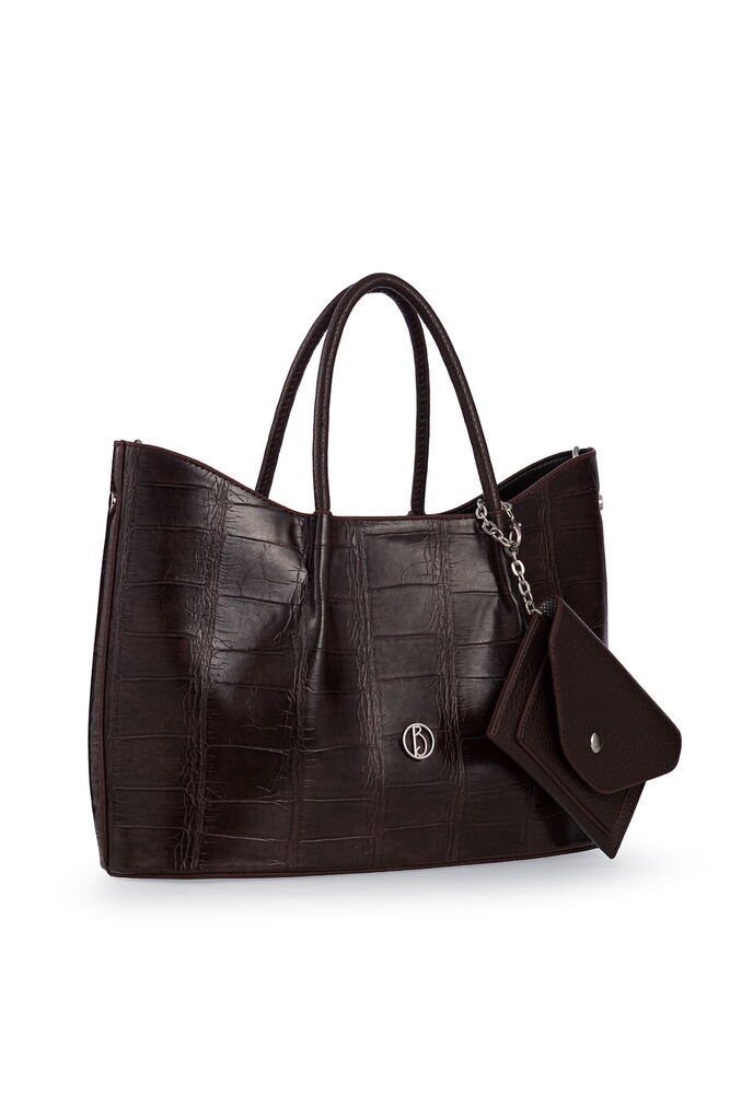 Bilik Deri Logo Detaylı Kahve Kadın El Çantası