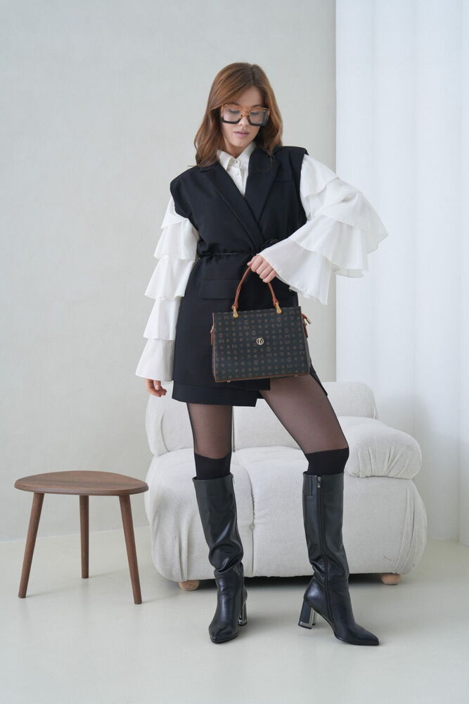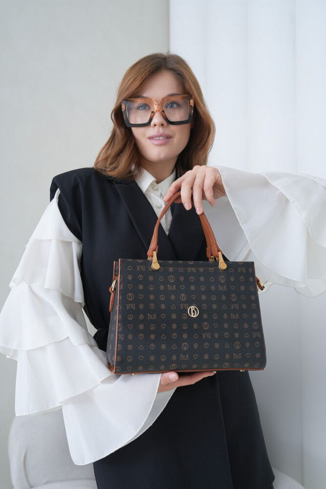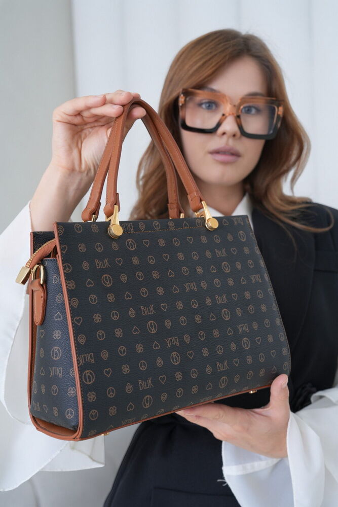 Bilik Deri Monogram Siyah-Taba Kadın El Çantası
