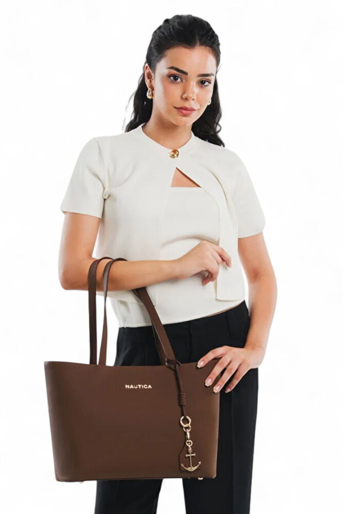Nautica Logo Detaylı Açık Kahve Kadın Omuz Çantası