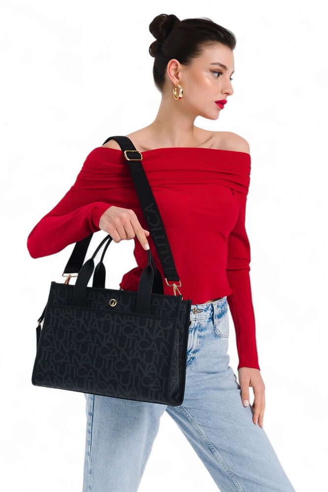 Nautica Monogram Siyah Kadın Omuz Çantası