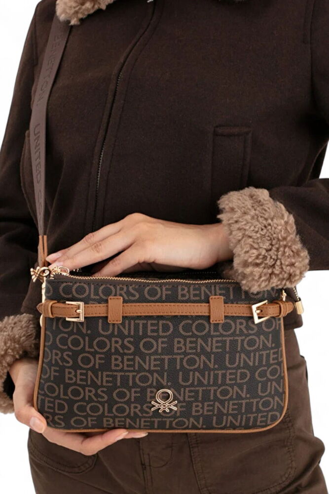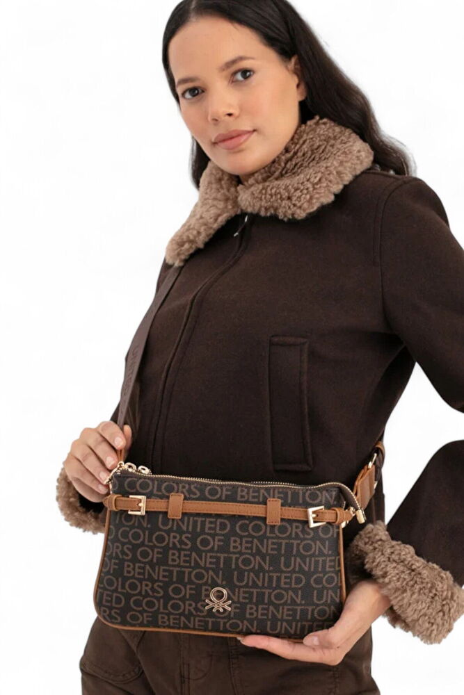 Benetton Monogram Kahve-Taba Kadın Çapraz Askılı Çanta