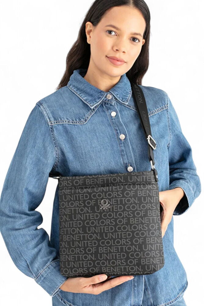 Benetton Monogram Siyah Kadın Çapraz Askılı Çanta BNT1643