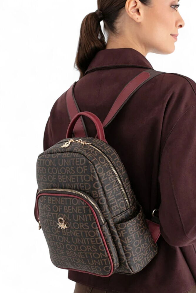 Benetton Monogram Kahve-Bordo Kadın Sırt Çantası BNT1645