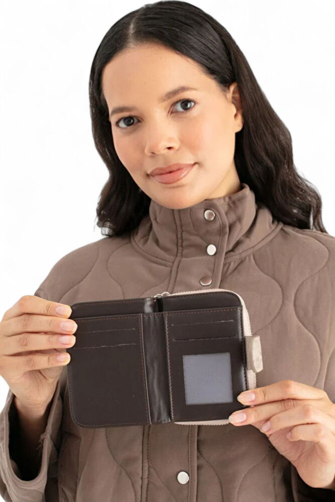 1 adet nakit para bölmesi 3 adet kart bölmesi 1 adet şeffaf kimlik bölmesi Fermuarlı bölme