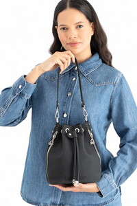 Büzgü kapamalı ana bölme Ana bölme içinde; 1 adet açık cep 2 adet fermuarlı yan cep Ayarlanabilir, çıkarılabilir omuz askısı