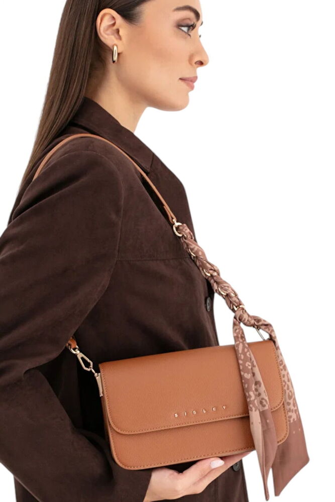 Sisley Logo Detaylı Taba Kadın Çapraz Askılı Çanta