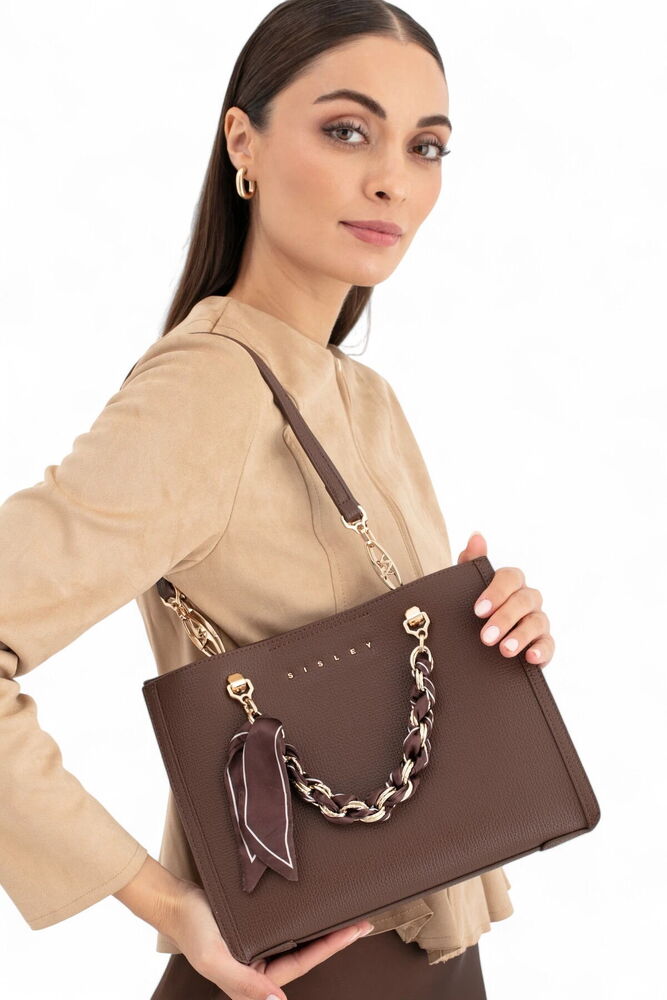 Sisley Logo Detaylı Kahve Kadın Omuz Çantası SLY287
