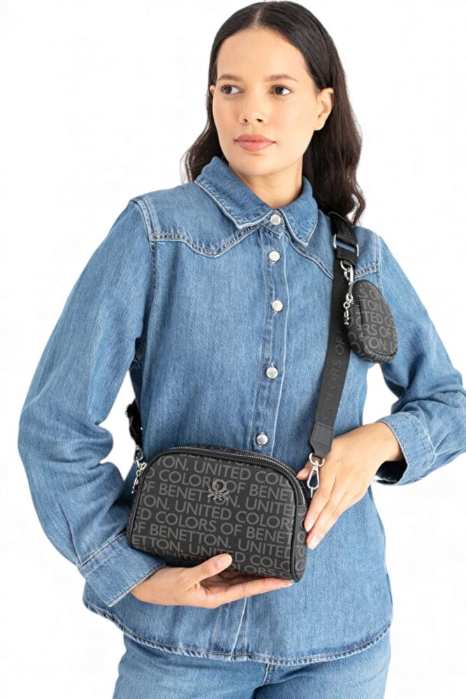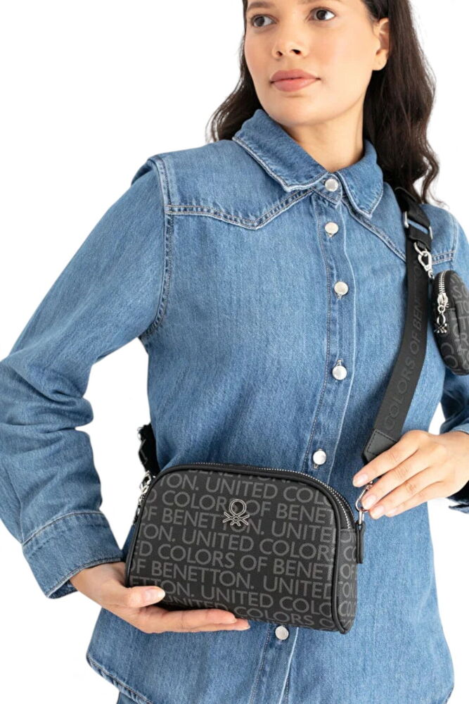 Benetton Monogram Siyah Kadın Çapraz Askılı Çanta