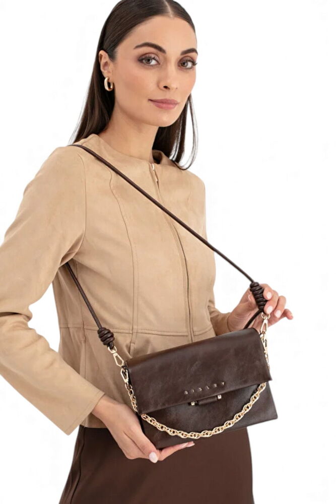 Sisley Logo Detaylı Kahve Kadın Çapraz Askılı Çanta