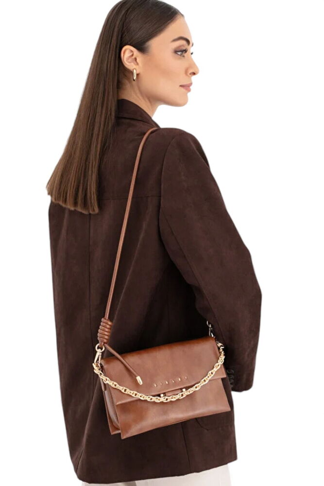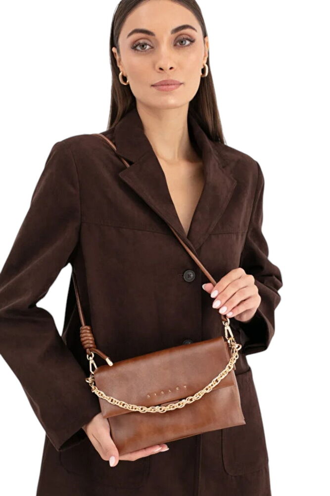 Sisley Logo Detaylı Taba Kadın Çapraz Askılı Çanta
