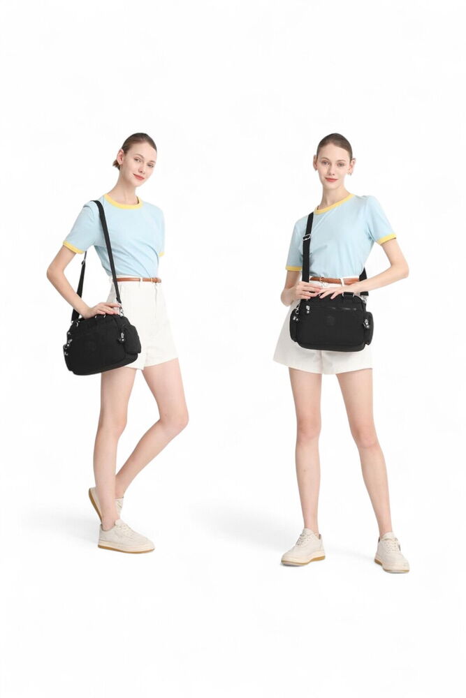 Fermuarlı ana bölme Ana bölme içinde; 1 adet fermuarlı, 1 adet açık cep 1 adet fermuarlı ön cep 1 adet fermuarlı arka cep 2 adet fermuarlı yan cep Ayarlanabilir, çıkarılabilir omuz askısı