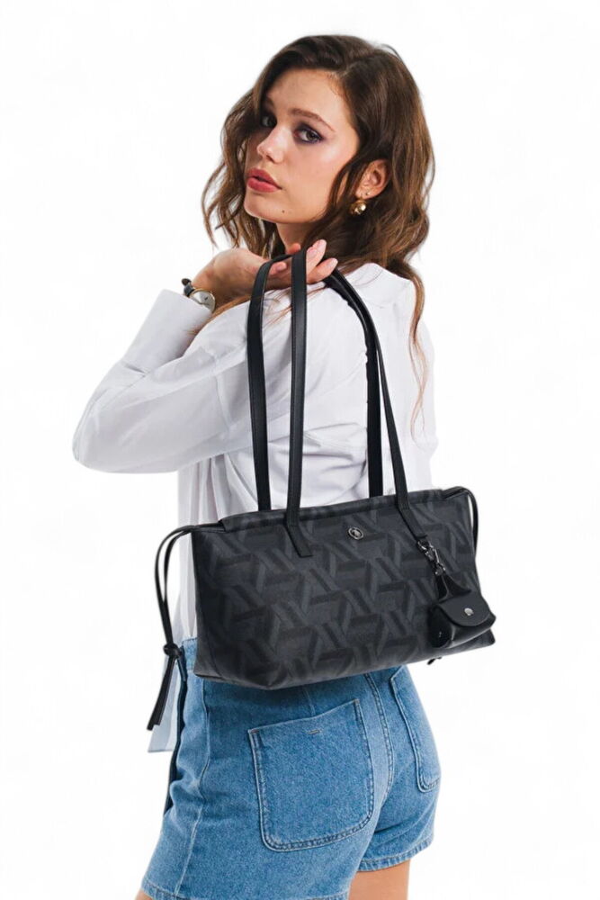 Bilik Deri Logo Detaylı Siyah Kadın Omuz Çantası